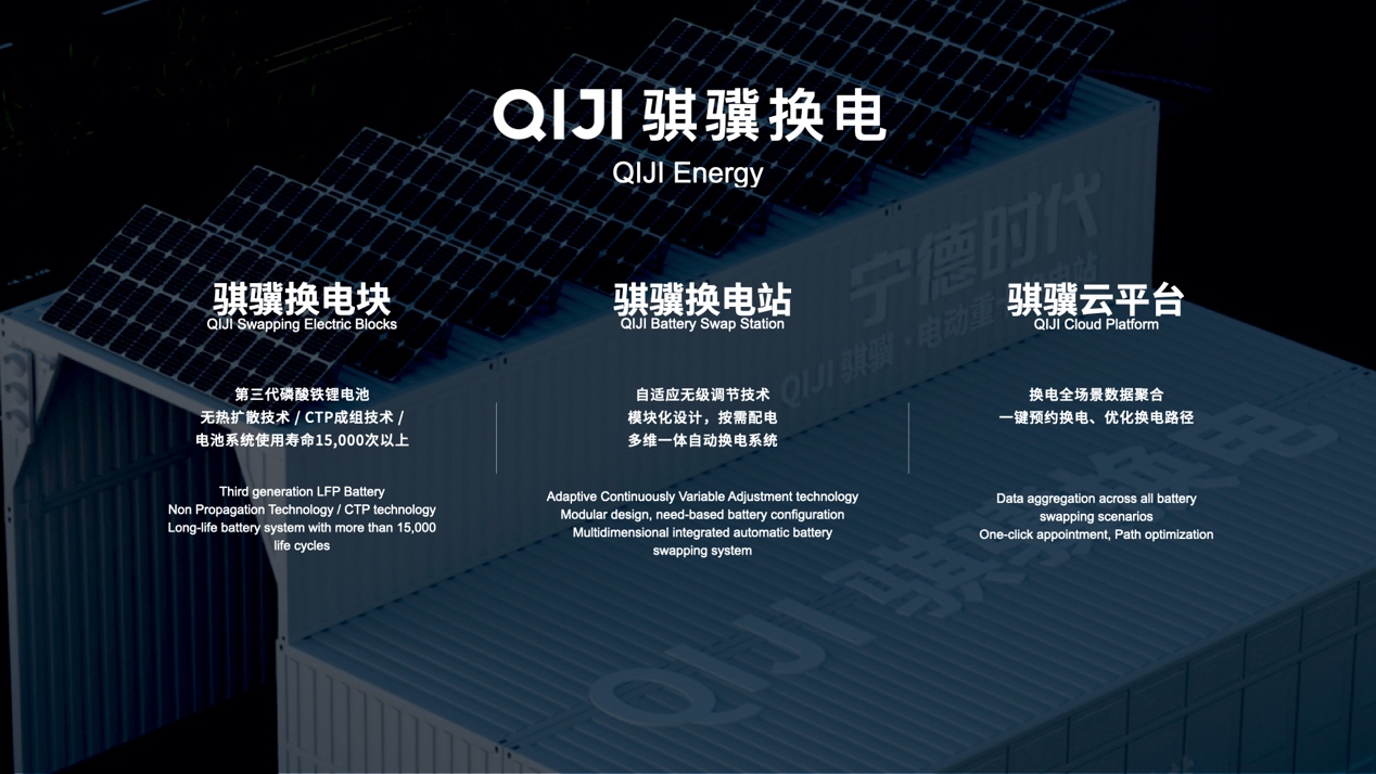 对此,宁德时代推出的骐骥换电一站式解决方案,包含骐骥换电块、骐骥换电站、骐骥云平台。