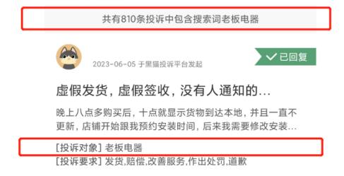 事实上,持相关看法的不止少数,今年3·15期间,有媒体对老板电器的产品及售后进行了专题报道,涉及异味泄漏、漏水跳闸、售后态度差、消毒柜有异味、洗碗机16个月被修6次等等。而在黑猫投诉上,涉及老板电器的投诉案例也已经多达800余条。