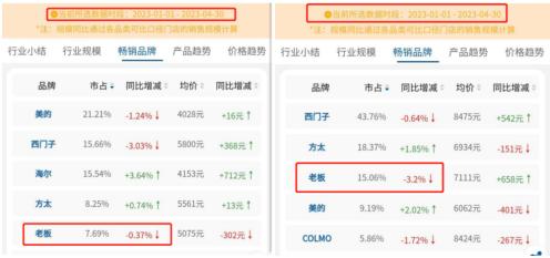 据奥维云网数据显示,今年1-4月,无论是线上还是线下渠道,老板电器洗碗机均出现下滑趋势。线上渠道,老板电器销售规模位于美的、西门子、海尔、方太之后,且出现0.37%负增长;在线下渠道,老板电器洗碗机销售规模下滑3.2%,跌至方太之后,居销售规模第三。