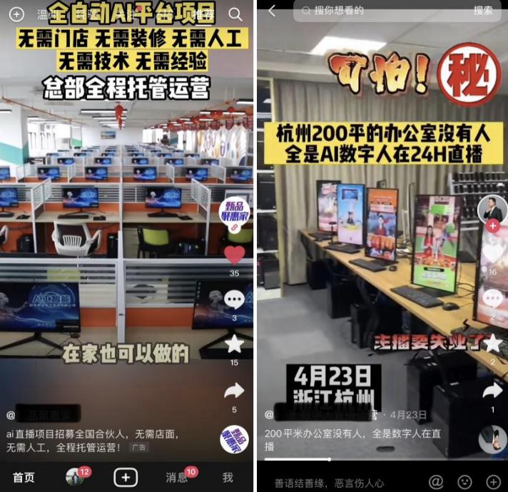 “可怕!杭州200平的办公室没有人,全是AI数字人在24小时直播!”