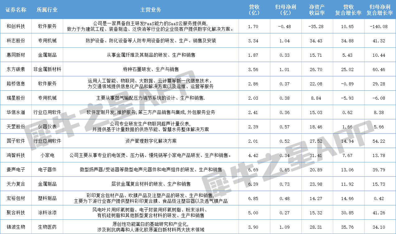 整体情况可以,但企业之间的体量差距颇大,营收最多差了将近6倍;另外从行业看,有前景明朗的AI方向、医美、储能等行业,当然也有一些营收净利都较稳的家电、原材料制造等较为传统的行业。