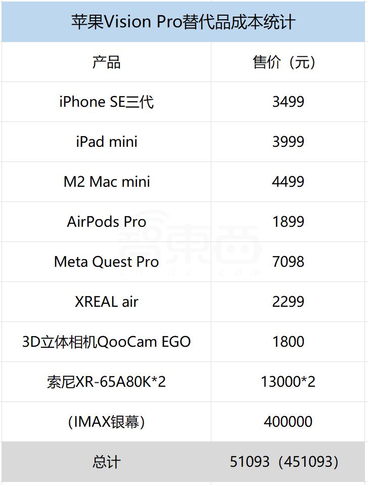总体来看,想要实现苹果Vision Pro的所有主要功能,实现基本相同的用户体验,以现有的消费级产品为基础,的确要花费远超苹果Vision Pro这“25000元”的成本。