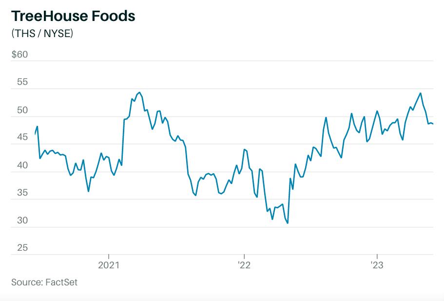 树屋食品(THS.N)专注在自有品牌食品领域,并且是该领域唯一一家公开交易的大型公司。在新冠疫情之前,因为食品价格上涨、经济波动和商店对销售独家产品的倾向,自有品牌食品领域一直在扩张。不过这种扩张对树屋食品股价影响有限,由于成本高企和供应链问题,树屋食品在过去三年中仅上涨了3.3%,而标准普尔500指数上涨了39%。