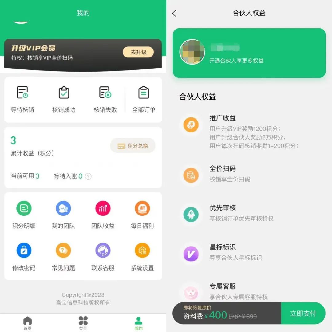 其二,你还可以缴纳199-499甚至更多的费用,获得VIP、合伙人相关的权益,可以享受下级的核销奖励。