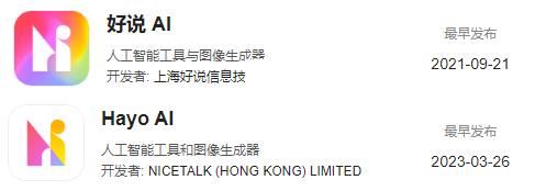 其实好说在年初就透露出想要尝试AI社区的想法了。今年3月份公司上线了新的App「Hayo AI」,内置了AI生成和社区功能,现在的「好说 AI」相当于另一个化身,两款应用几乎完全一致,甚至连LOGO设计都能互补。