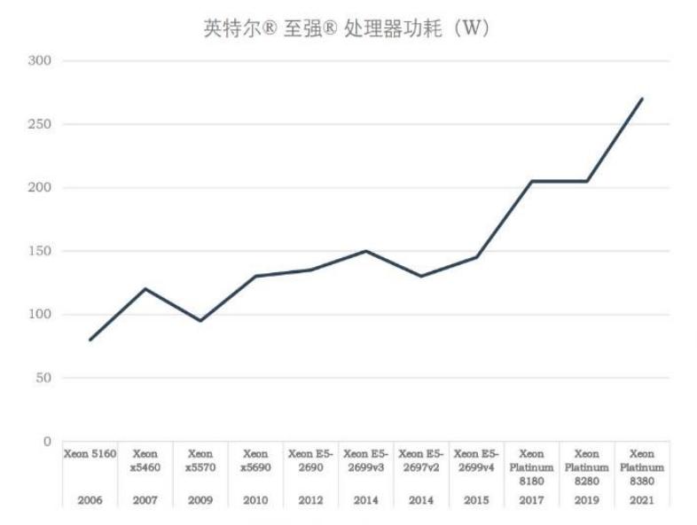 但计算能力的快速发展,就必然伴随着能耗的加大,据ODCC《冷板式液冷服务器可靠性白皮书》信息,2022年Intel第四代服务器处理器单CPU功耗已突破350瓦,英伟达单GPU芯片功耗突破700瓦,AI集群算力密度普遍达到50kW/柜。