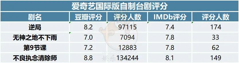 爱奇艺国际站的自制剧《不良执念清除师》毫无悬念地登上了5月该站趋势榜第二名,作为爱奇艺国际站第四部自制台剧,豆瓣和IMDB评分都达到新高点,豆瓣13.5万的评分人数,比趋势榜其他四部陆剧的评分人数加起来都多。