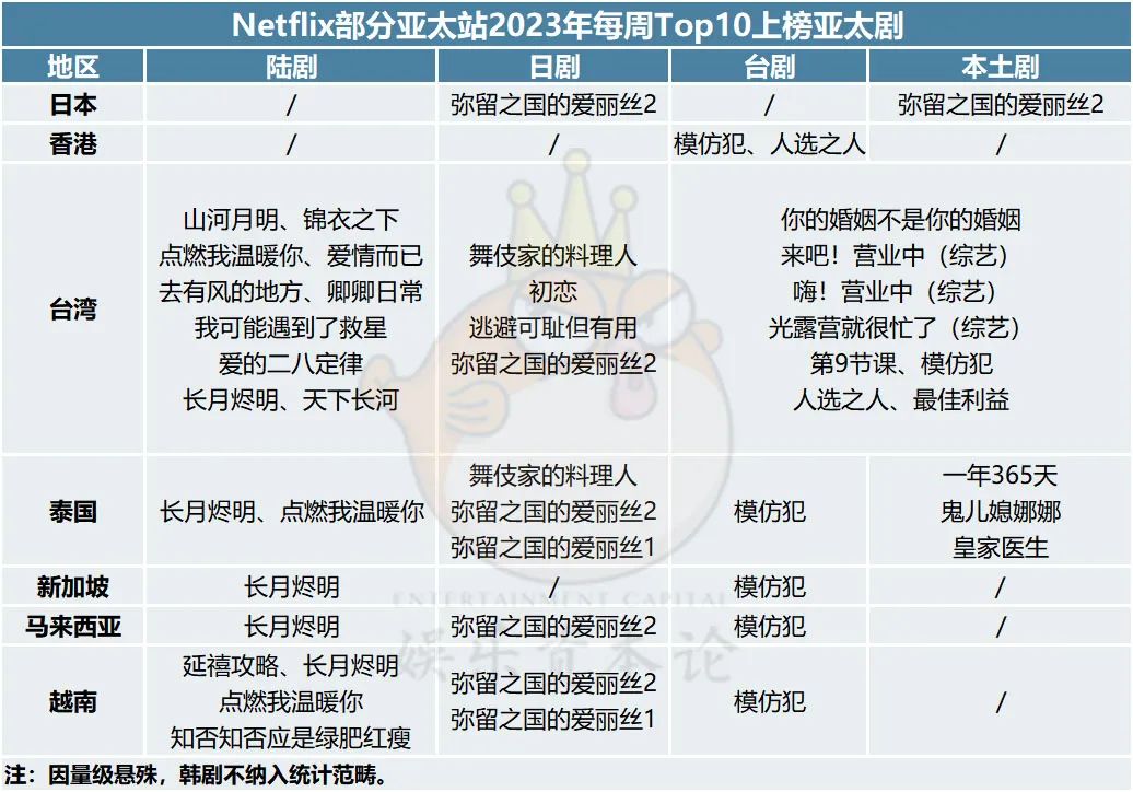 据统计,2023年Netflix亚洲部分国家地区每周热播剧Top10中,华语剧(尤其是陆剧)仍然是韩剧之外最受欢迎的亚洲剧。