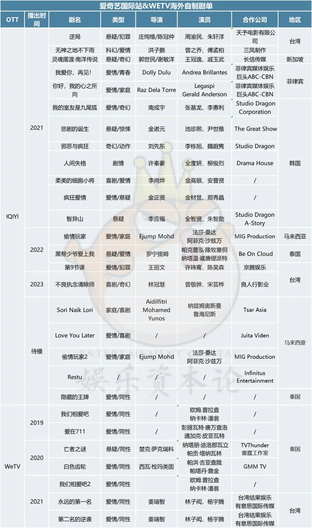或许因为题材、语言等因素,中国观众对海外自制的台剧和泰剧关注度比较高,但事实上中国流媒体平台在东南亚的布局已经稳步展开。
