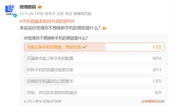 这样看,就不难理解“微博数码”投票排名第一的为什么是“市面上新手机价格贵,性价比低”了。