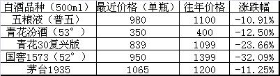 绝大多数中端高端白酒的价格,都出现了倒挂,还比往年价格低了不少: