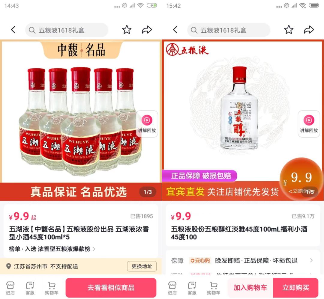 这个9.9元起的五湖液和五粮醇上,印的酒厂名字就是五粮液股份有限公司本身。