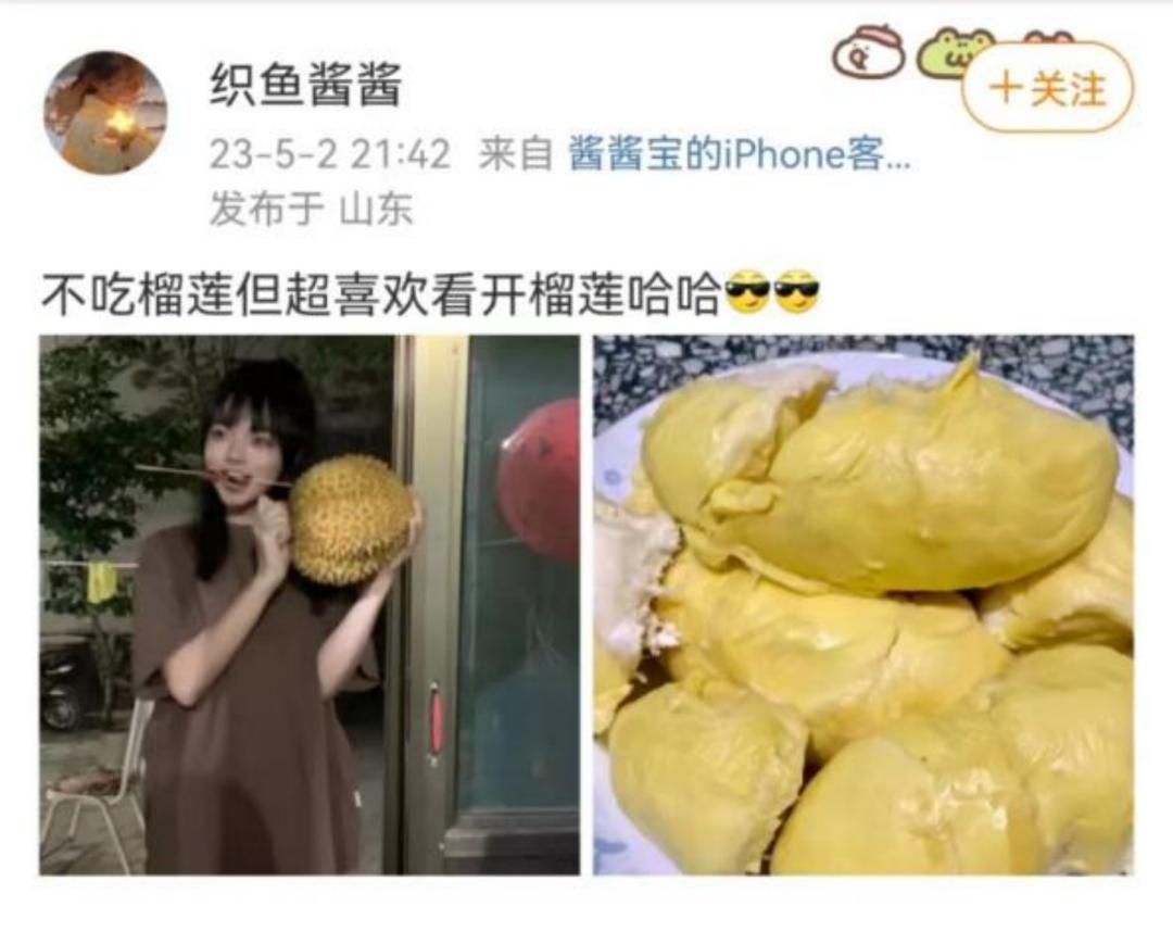 不吃榴莲但超喜欢看开榴莲。(图/微博@织鱼酱酱)
