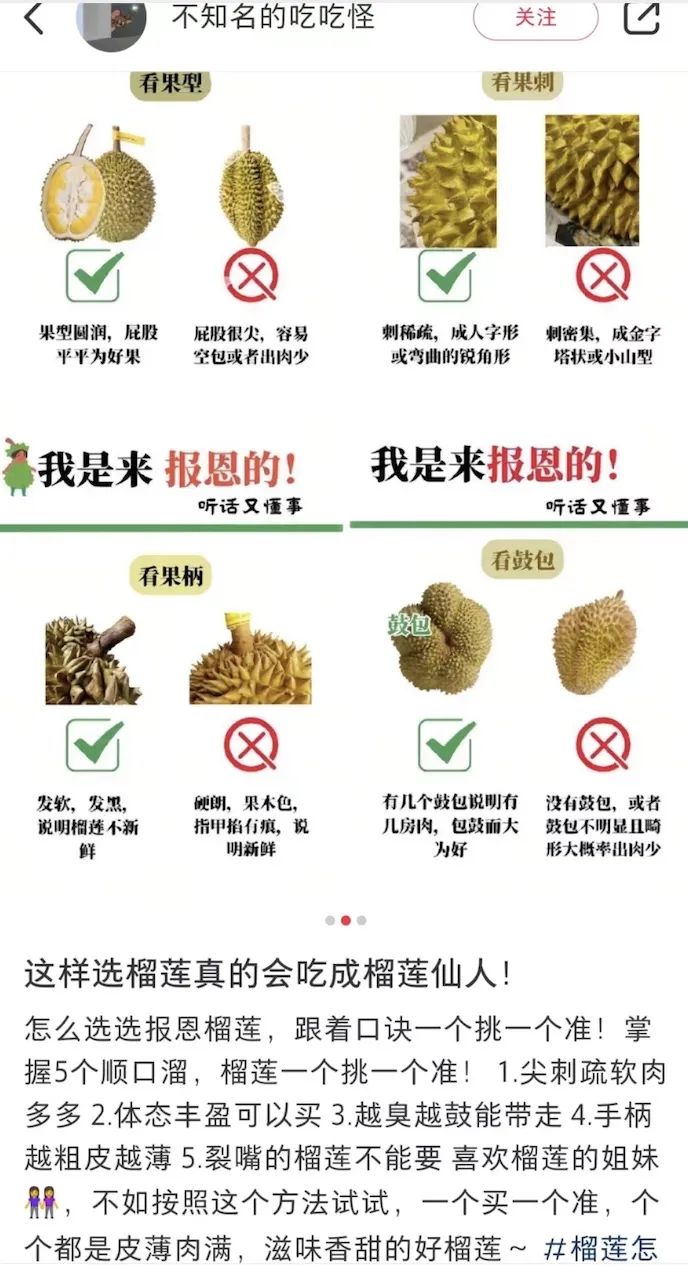 榴莲挑选顺口溜(图/小红书@不知名的吃吃怪)