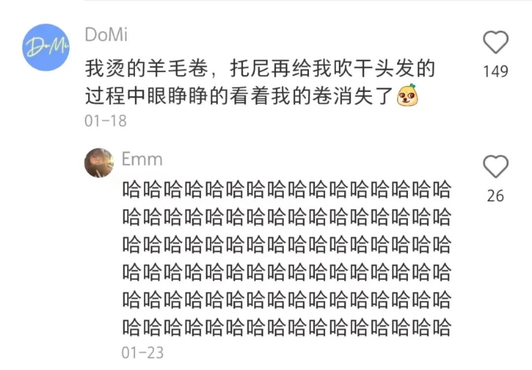 眼睁睁地看着托尼把我的卷发给吹没了是种什么体验?(图/小红书@DoMi)