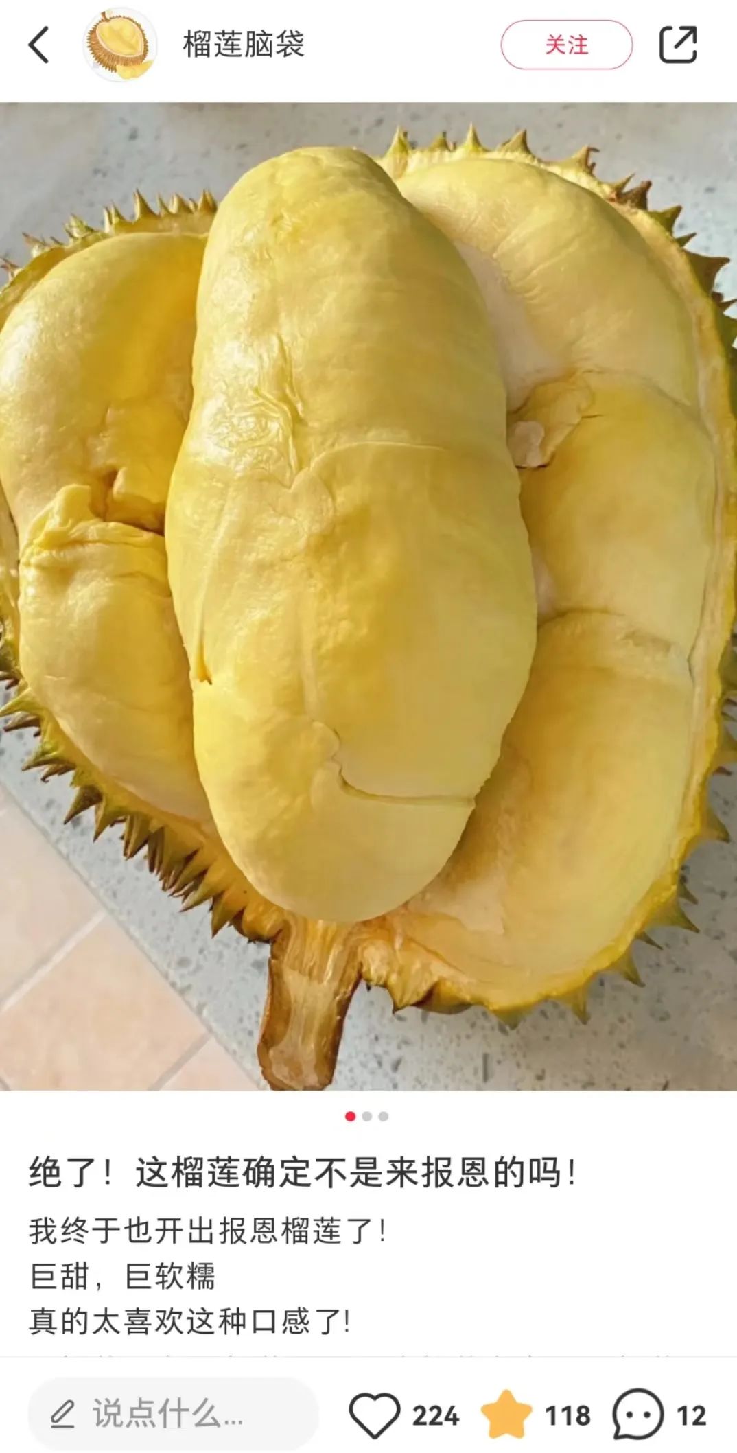 有运气非常好,开出一个皮薄肉多的懂事榴莲的,可以开心一整天;
