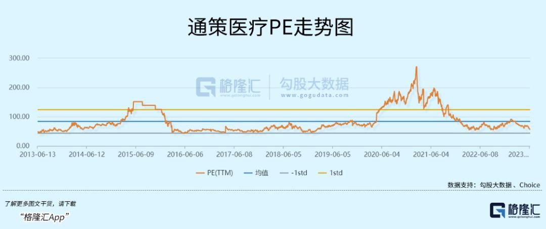 通策医疗狂泻的背后是逻辑与估值的惨烈双杀。其中,PE-TTM从200多倍一路杀到现在的56倍。