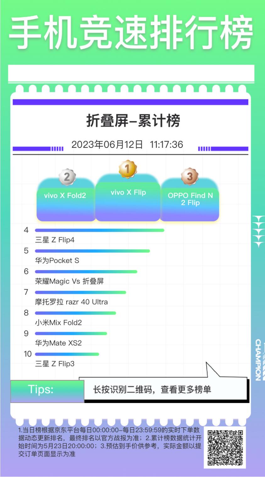 另一个优势是在折叠屏。虽然今年二季度折叠屏手机出货量同比和环比均在下滑,仅为193万部。但根据京东数据,这次618折叠屏手机销量同比增长三倍。在这个苹果不曾踏足领域,国产玩家们的优势正在逐渐稳固。vo两家包揽了前二,三星仅排第十。