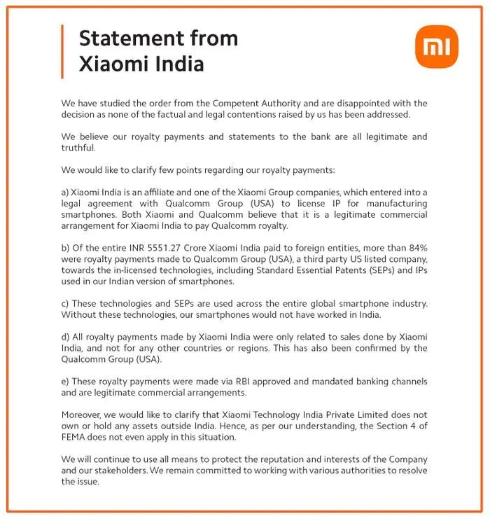 为此小米印度还发了一则声明