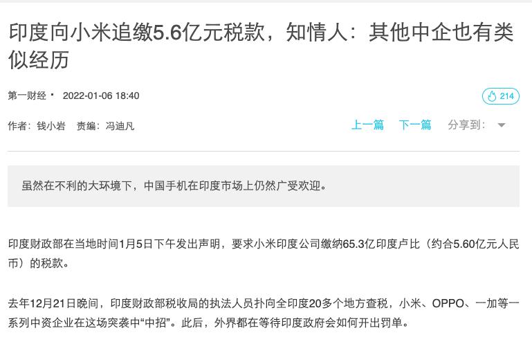 除了小米之外,国内出海的华为、中兴、OPPO、vivo、富士康等企业,都遭到过印度税务部门的清查。