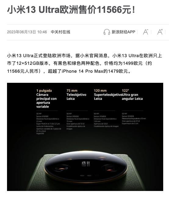 小米13 Ultra 在欧洲也开卖了,价格不但破万,比国内要还要贵了 5000 多,价格还超过了 iPhone 14 Pro Max。