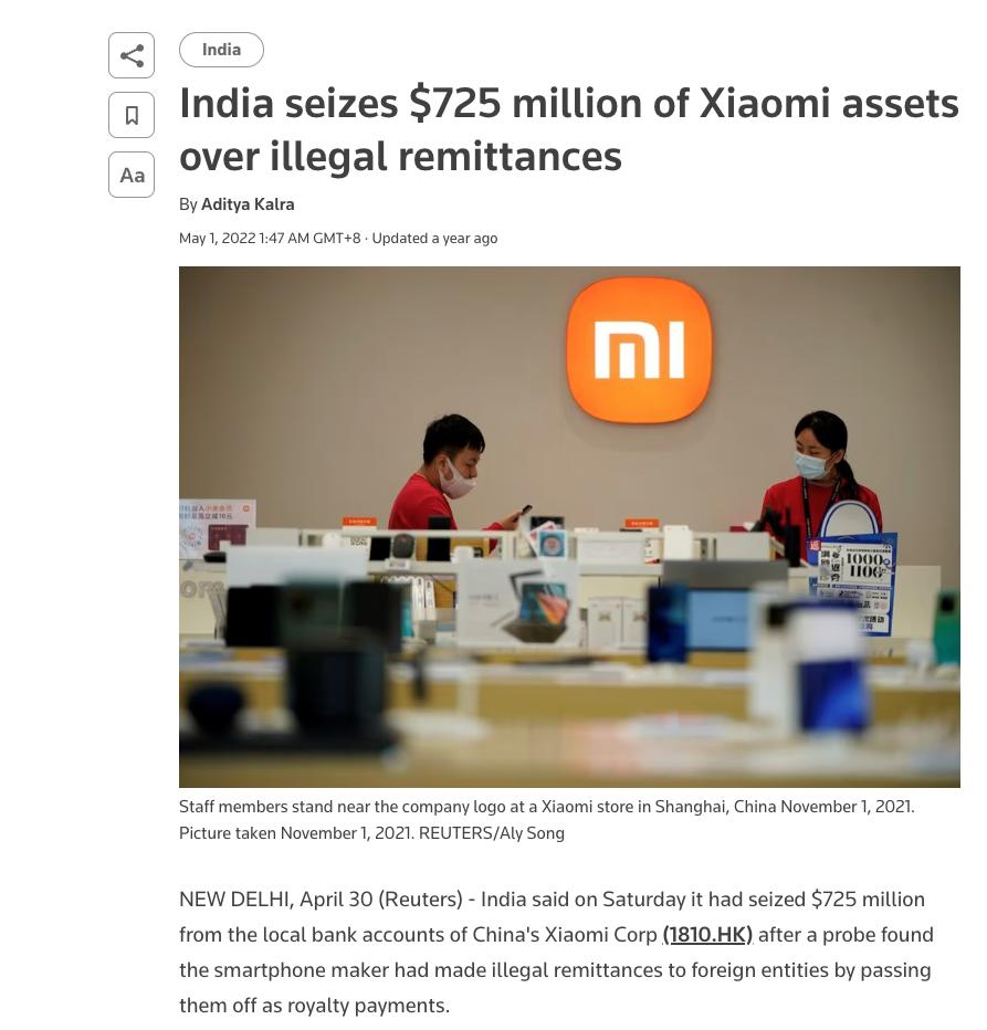 知乎:如何看待小米被曝涉嫌非法汇款,遭印度政府扣押约 48 亿元,小米回应称「将与政府合作澄清误解」?