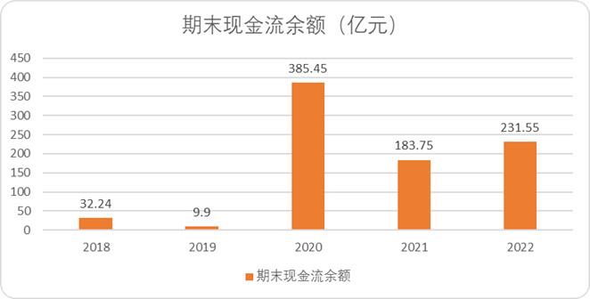 图:蔚来期末现金流余额,来源:Choice金融客户端