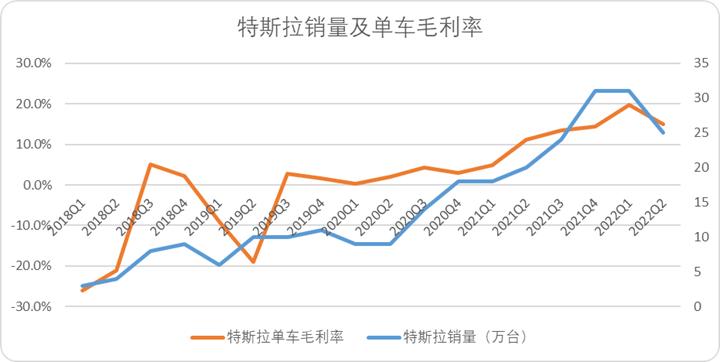 特斯拉第一个毛利率大幅转正的区间是单季度4万到8万区间(+23.5pct),考虑到此时锂电池的价格百分位在25%左右,单季度的单车毛利实际贡献可能在6pct左右。