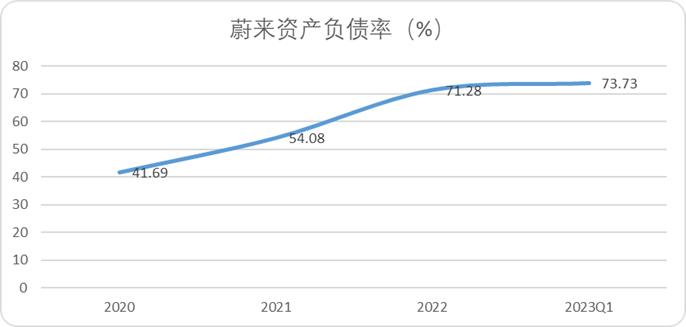 而对于蔚来而言,如果生产与销售两端没有同步大幅改进,融资难度定会大幅度提升。蔚来一季度的资产负债率已经达到了73.3%,因此可用的债务融资比例并不大。