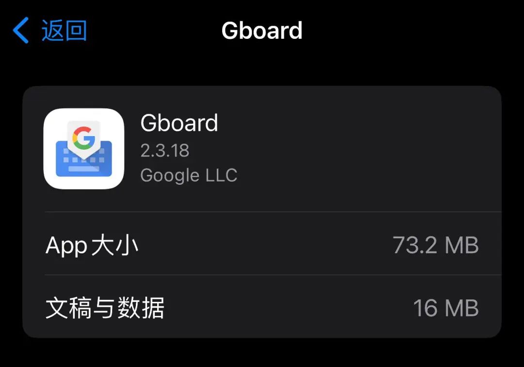 但最特色的拼写 Plus 功能与微信生态绑定,存储占用与哔哩哔哩不相上下的微信键盘,真的值得让你放弃正在使用的输入法么?除了系统自带的输入法,我同时还在使用 Gboard,不论是 app 大小还是数据容量,都远小于微信键盘——这是我用了 5 年后的存储占用。