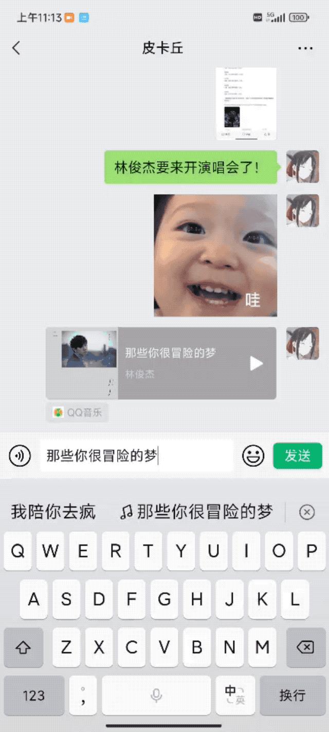 当你看到林俊杰要来附近开演唱会,可以用微信键盘把最喜欢的歌曲分享给好友。