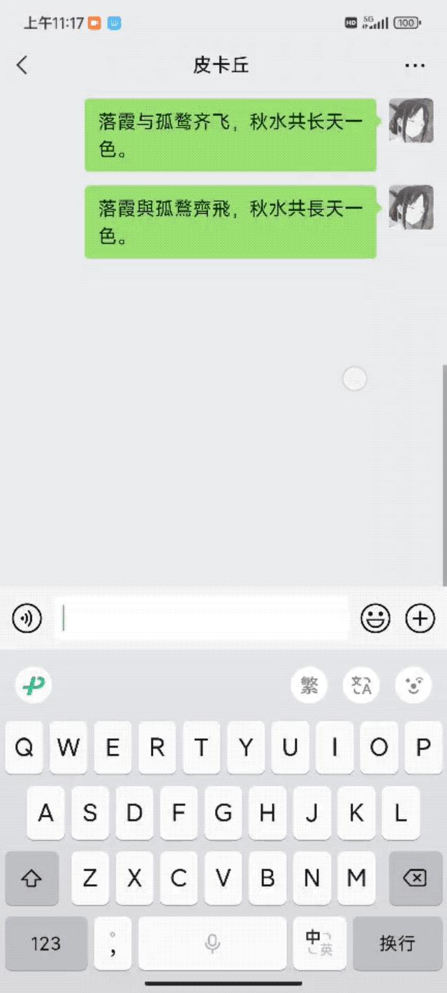 微信键盘还内置了繁简切换功能,配合自定义的工具栏,习惯简繁都能一键切换。