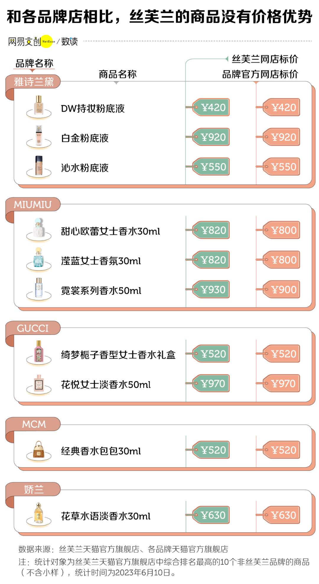 对比丝芙兰和其他美妆品牌的同一商品在各自天猫旗舰店的价格,我们会发现丝芙兰的商品通常卖得不会比品牌自己的官方旗舰店便宜,甚至还要更贵。