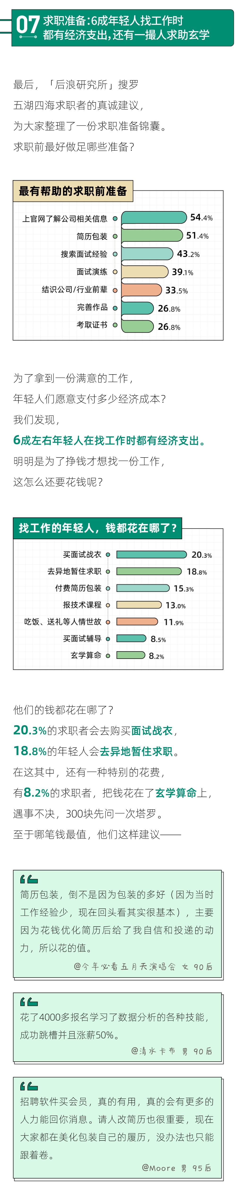 在目前的就业形势下,求职已经不是「努力就能马上获得回报」这么简单的双向逻辑。一个受访者在问卷中告诉我们:求职真的是看眼缘,基本聊3分钟就确定了。在提升自身素质之外,找工作过程中的运气成分也很大,可能你行动得早,面试官就优先发掘了你,也可能这个岗位的同辈竞争者恰好都放弃了名额,这个萝卜坑就为你空出来了。