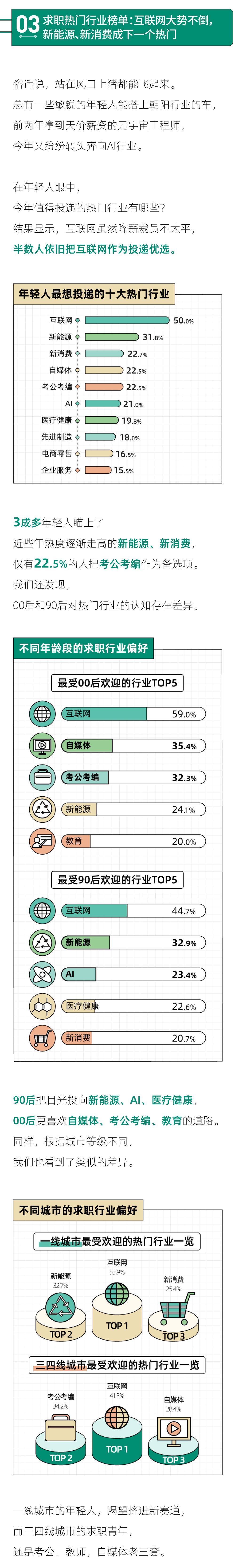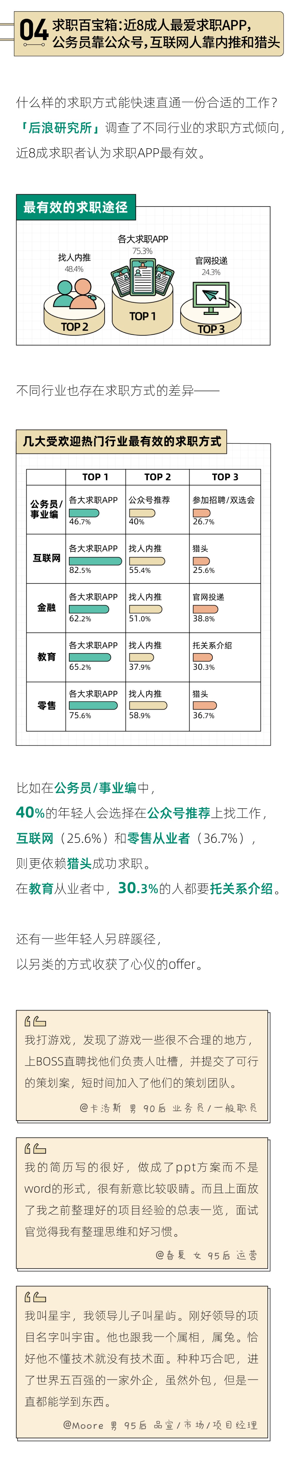 但其实,求职之路的不确定因素太多,有太多的主客观变量,需要长期的稳定探索和耐心的等待。它可能没那么艰难,但一定需要时间的沉淀。阅读过这份报告后,我们希望正在求职的你也能放下焦虑,不要怀疑自己,也许一个绝好的工作机会明天就会送上门。祝读到这里的每一位读者都能收获心仪的工作!