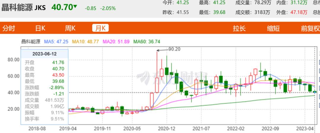 较多光伏企业严重依赖政府补贴,这导致了上市的光伏企业股价波动较大,6月12日,光伏板块重拾跌势,欧晶科技跌近4%,固德威、帝科股份跌超3%,阳光电源跳水跌逾2%,隆基绿能跌逾1%再度逼近阶段新低。6月13日,国内光伏龙头晶科能源股价同样受挫,其股价距高位时已经腰斩有余。还有众多光伏上市企业股价也持续跌跌不休。