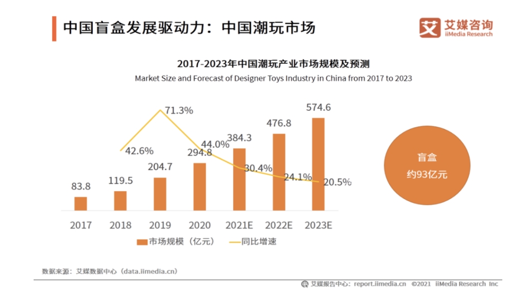 以潮玩市场为例,2017年到2020年的3年间,中国潮玩市场占全球市场的比例,从11.18%急速上升到了19.74%,这一数字有望在2023年达到23.03%。