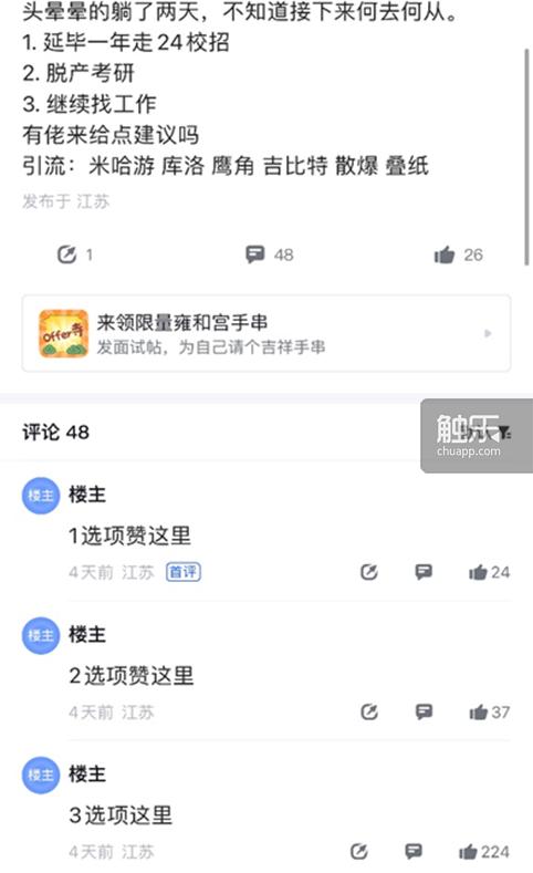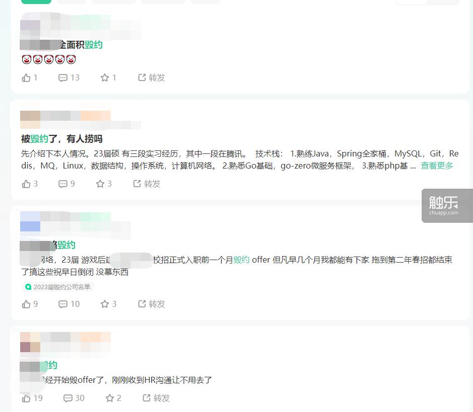 “其他人好像都是白天接到的通知,只有我的是‘午夜凶铃’。”可可睡不着觉,到处找人问现在还有什么公司开着校招。他又在脉脉上发了条职言吐槽:“前几天还在嘻嘻哈哈准备入职,结果今天组没了。”
