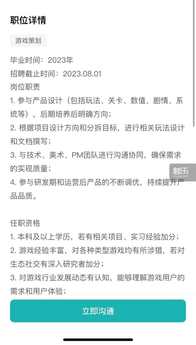 在游戏行业默认的校招标准中,应届生只按年份,而不是社保计算。按照国家规定,高校毕业生从毕业之日起两年内为择业期,择业期内未落实就业单位的毕业生可以享受毕业生同等待遇。但对于许多游戏公司而言,如果是2023届校招,那么基本只认可2023年毕业的学生,过了这个时间节点便不再视为应届,只能参与社招——到那时,他们必须面对“3至5年工作经验”的条件,以及更多的竞争者。