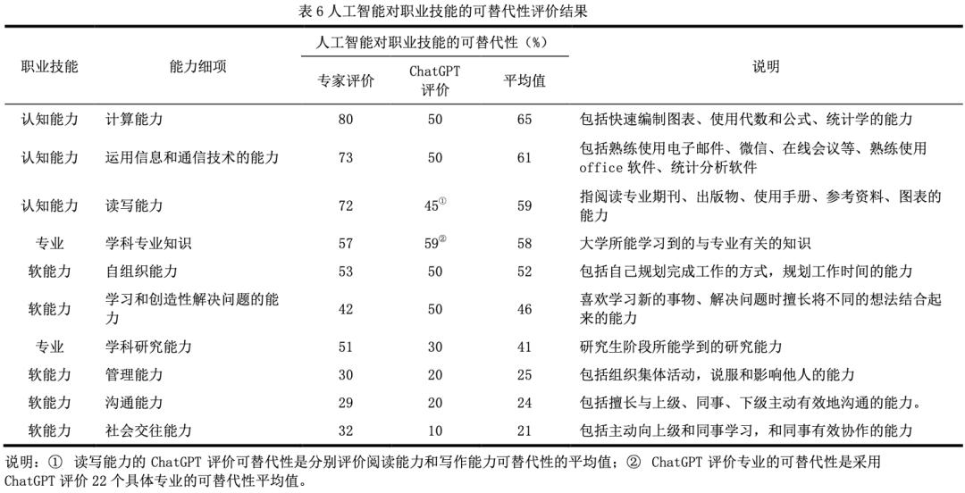 在具体的职业技能和职级层面,AI有较大概率替代「认知能力」和低职级员工,但职业软技能和管理者还无法被替代。
