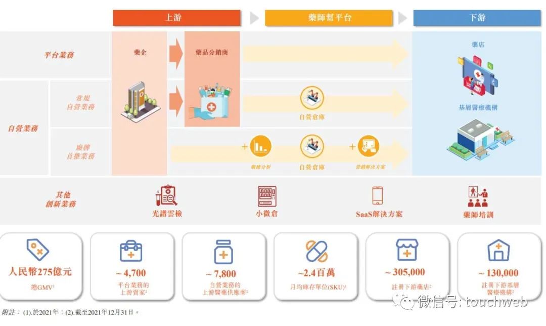 据介绍,药师帮2015年成立,已成为中国规模最大且增速最快的院外数字化医药流通平台之一,通过链接和赋能上游包括药企、经销商,以及下游药店、基层医疗机构,提供第三方平台撮合与自营销售的线上服务。