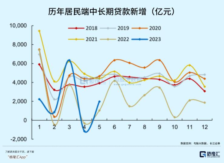 居民端新增短贷和中长贷分别为1988亿元、1684亿元,较去年5月分别多增148亿元、637亿元。其中,中长贷逆转了4月罕见负增长的情形。一方面,提前还贷潮现象有所缓解;另一方面,去年疫情封控较为严格,基数相对较低。