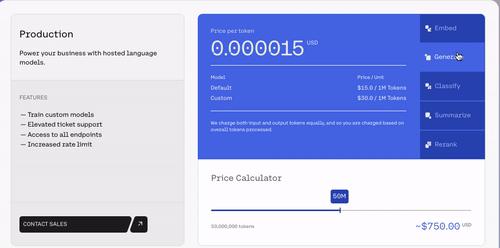 Cohere不同功能的价格情况,图片来自Cohere