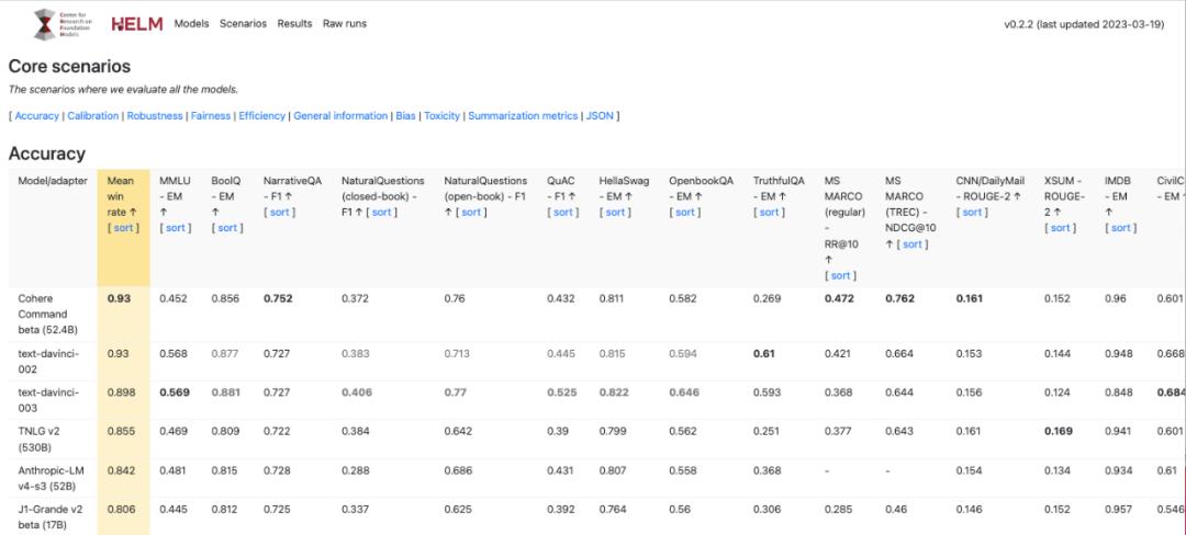 图片截自斯坦福大学的语言模型全面评估(HELM)官网