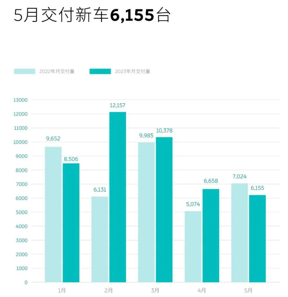 关于蔚来降价原因的一种猜想是,蔚来销量不及预期。因为2023年上半年,蔚来的月销量已经多次出现震荡,回落到1万台以下。