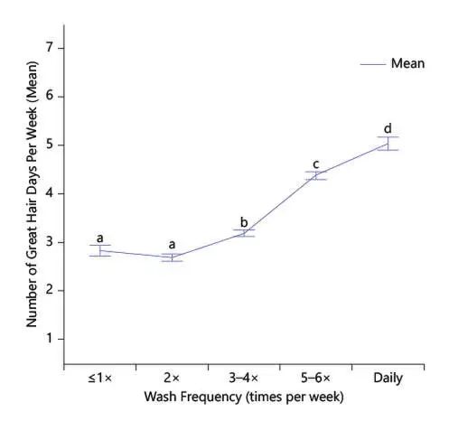 分析「头发好日子」发现,小组成员每周对其头发状况总体满意的天数,随着洗头频率的增加而显着增加。