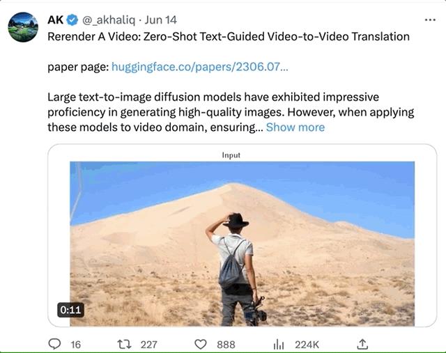 相比之前的AI视频生成模型,这个框架最大的优势在于,当输入一个新视频的时候,它不需要再用这个视频材料重新进行训练,换而言之就是零样本学习。