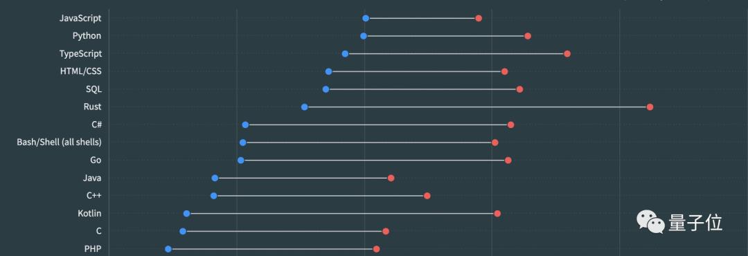 但要说最受喜爱的编程语言,还得看Rust,有超过80%的使用者表示希望明年继续。