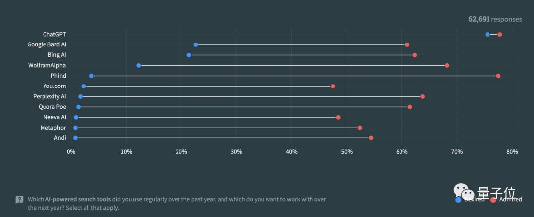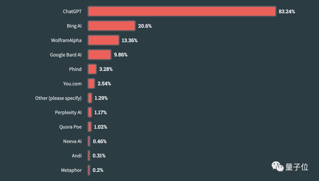 首先,作为AI搜索工具,ChatGPT是强势首选:63024名参与这项的受访者中,有83.24%的人都用过它。