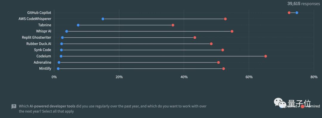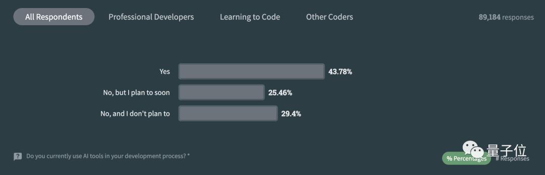最后,值得注意的是,有70%的受访者正在或计划在其开发过程中使用AI工具(也就是有30%不打算用咯?)